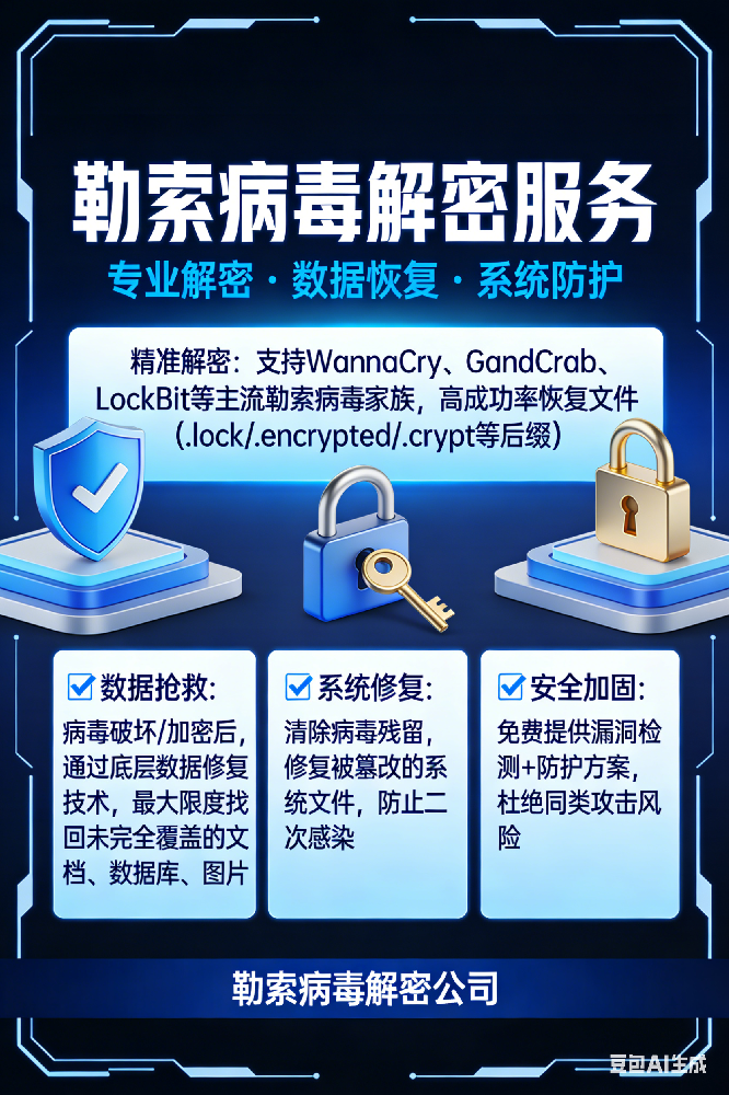 解密360 .520 865qqz Blm eking ZEPPLINE,Devos,Dewar,C1H-C4H,BG85等后缀勒索病毒.济南龙瑞信息技术有限公司,勒索病毒解密,快速解密数据,24H在线解密.勒索病毒解密,Crylock-Devos-eking-865qqz-File-LockBit-makop-eight等加密后缀均可完整救援-保障数据完整性-追踪溯源-提供防御方案,勒索病毒解密...[详情]